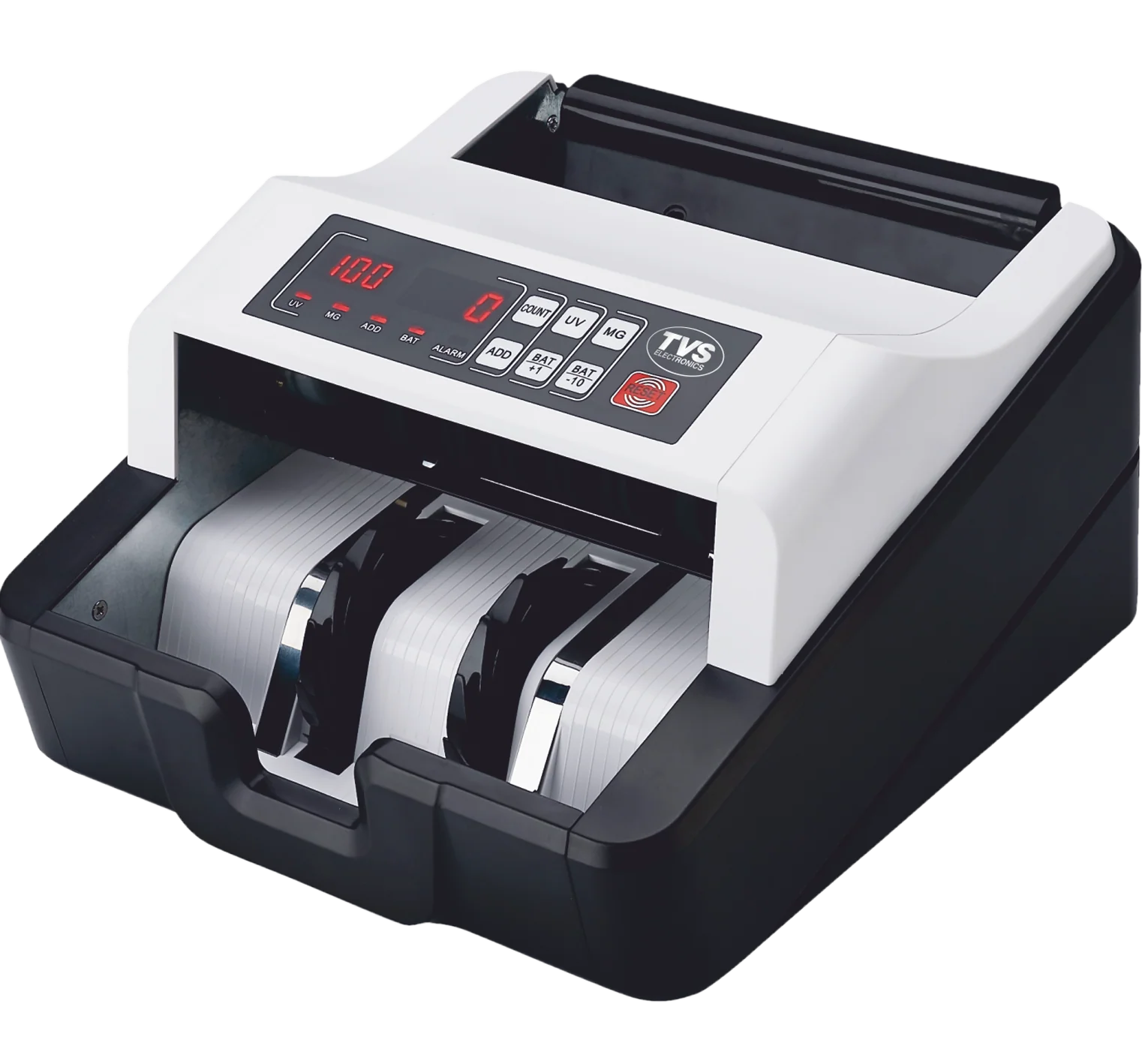 CC-232 Classic is designed with big front display and buttons with display range of 1-999. It automatically detects fake notes with ultraviolet and magnetic radiations and also counts old and new notes with high level of precision and speed (Super Fast Counting Speed -1200 Notes / Minute). It supports batching, adding and Self-examination functions